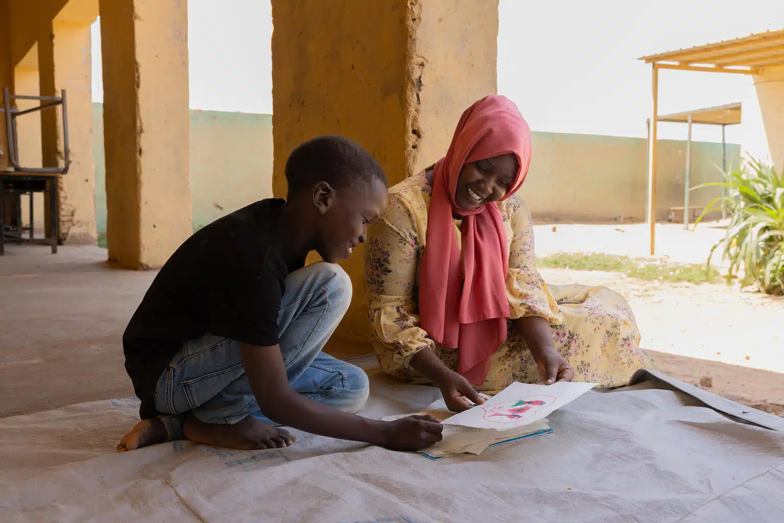 Dans un centre soutenu par l’UNICEF à Atbara, un atelier de dessin et d’art est organisé pour aider les enfants à exprimer les émotions difficiles et les peurs qu’ils ressentent à cause du conflit. Cela créé pour eux un espace de réconfort et d’échange qui leur fait du bien.