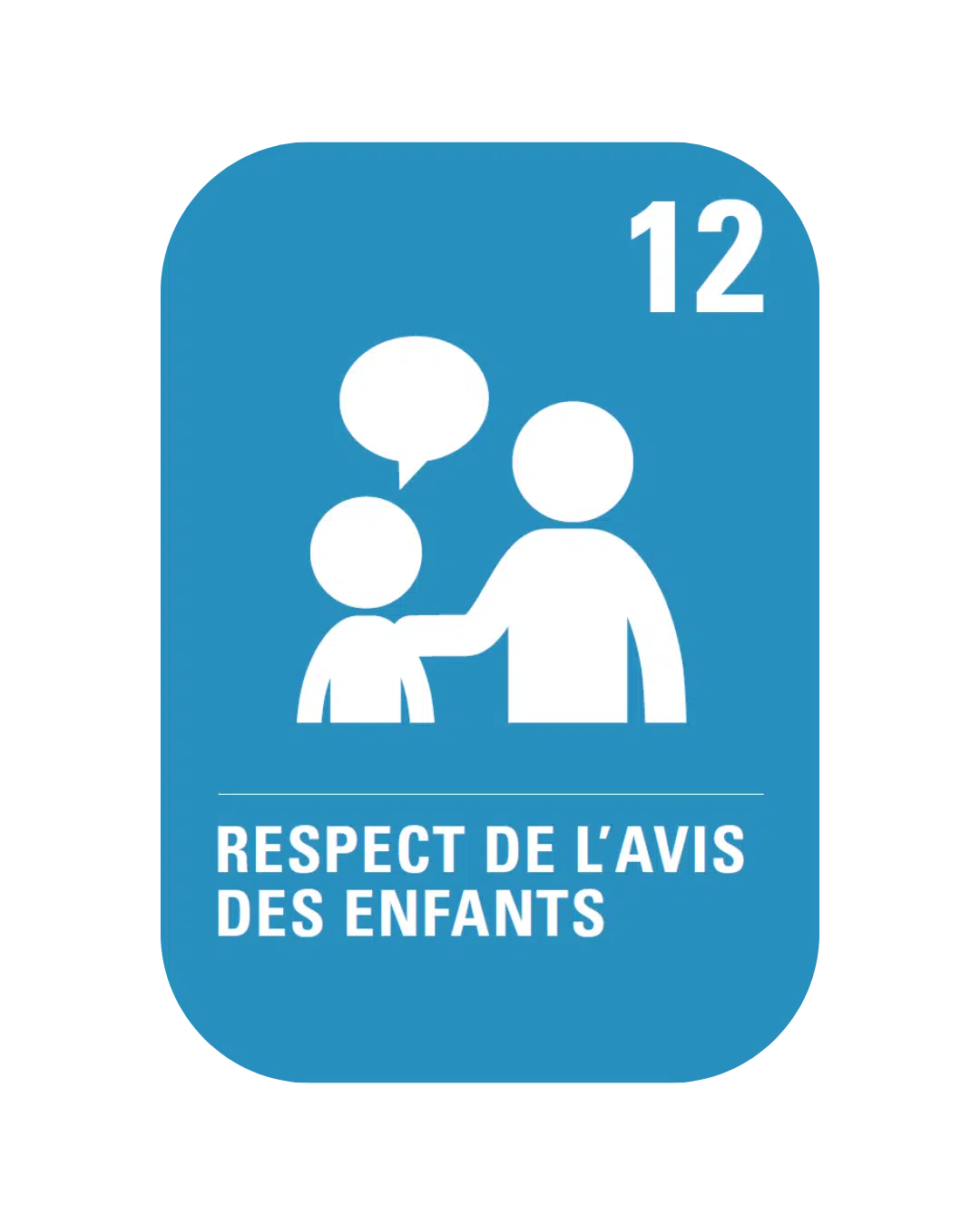 Garanti par l’article 12 de la Convention internationale des droits de l’enfant, le droit à la participation reconnaît que chaque enfant peut exprimer librement son opinion sur toute question qui le concerne, et que cette opinion doit être prise en considération.