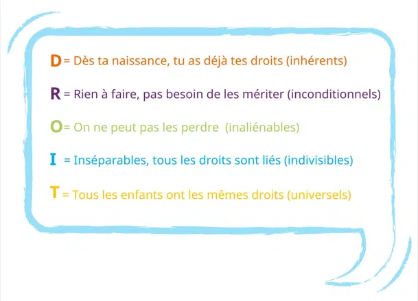 - Enfin, le droit à la participation reconnaît que l’implication de l’enfant dans les décisions qui le concernent est essentielle pour faire respecter tous ses autres droits.